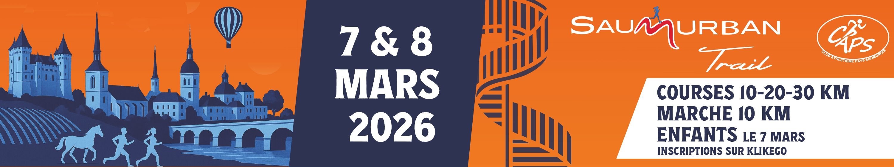 Le Saumurban Trail revient pour sa 12ème édition. Le comité d'organisation du CAPS (Club d'Athlétisme du Saumurois) a le plaisir de vous proposer une nouvelle édition de cette course emblématique.